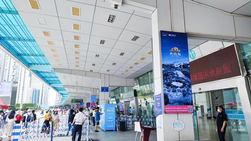 24面大幅燈箱廣告在郵輪中心出發(fā)層的廊道面向全國(guó)各地游客進(jìn)行多角度多方位的展示,通過(guò)不同的火山島的廣告畫面——藍(lán)綠色的大海、金色細(xì)軟的沙灘、暗黑色的礁石、臨海而立的粉色城堡、半球形的可愛童趣泡泡屋。讓全國(guó)游客可以領(lǐng)略火山島的獨(dú)特的濱?;鹕斤L(fēng)景線。