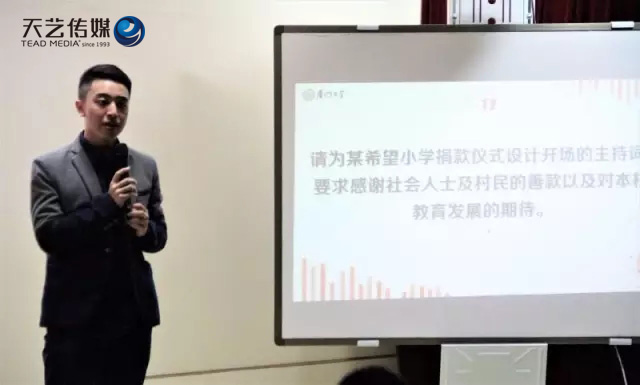 “首先,自我介紹簡短較好,幽默的話一兩句足夠,最好迅速進(jìn)入正題;還要注意不給自己“挖坑”。第二,儀態(tài)很重要,可利用環(huán)境緩解緊張,做出自然的手勢,給人放松之感。第三,選擇可駕馭的才藝展示,注意情緒轉(zhuǎn)換,與觀眾眼神交流。從觀眾角度出發(fā),調(diào)動觀眾參與度,與觀眾多互動。最后,要注意塑造鮮明豐滿的個(gè)人形象,個(gè)性化的主持風(fēng)范可以給評委留下深刻印象。”——熊慧老師